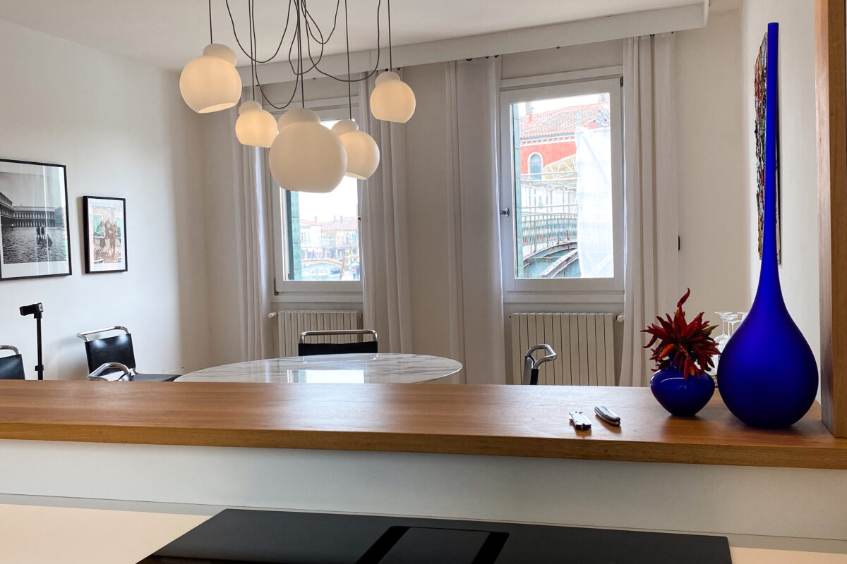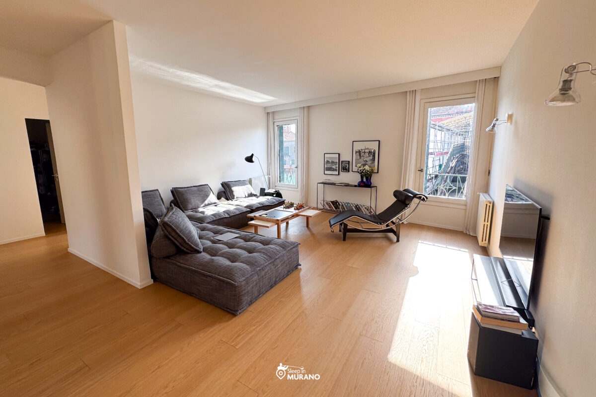 Nel cuore pulsante dell’isola di Murano, affacciato sul maestoso Canal Grande, sorge un appartamento che incanta al primo sguardo.