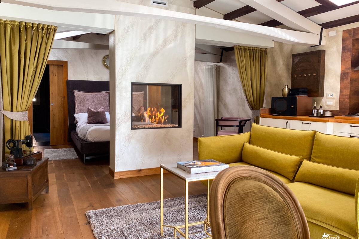 RUBINO Suite è una scelta raffinata, resa unica dai dettagli, la finestra ad arco che si affaccia sul Canal Grande di Murano, e caminetto moderno bi-facciale. Questi due dettagli rendono questa proprietà estremamente speciale e una delle migliori visione del design moderno veneziano.